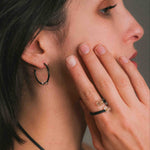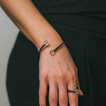 Anillo abierto de estética minimal, inspirado en la forma del torque y reducido a su gesto más esencial.