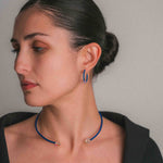 Pendientes de aro inspirados en la forma ancestral del torque, reinterpretados desde una estética contemporánea y luminosa.